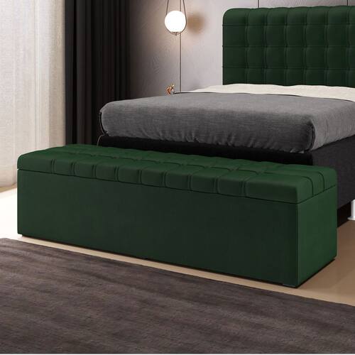 *Características do Produto* Madeira de eucalipto proveniente de reflorestamento. Fixação com grampos galvanizados. Espuma Poliuretano D20. Produto Costurado. Revestimento: Veludo Possui pés: Sim, 4 sapatas. Com baú interno espaçoso. Embalagem: plástico bolha, papelão ondulado, malha, plástico Garantia de 3 meses contra defeitos de fábrica.