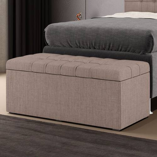 *Características do Produto* Madeira de eucalipto proveniente de reflorestamento. Fixação com grampos galvanizados. Espuma Poliuretano D20. Produto Costurado. Revestimento: Linho Possui pés: Sim, 4 sapatas. Com baú interno espaçoso. Embalagem: plástico bolha, papelão ondulado, malha, plástico Garantia de 3 meses contra defeitos de fábrica.