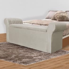 Calçadeira Báu Cancun 160cm Suede Bege - Vallisa Decor
