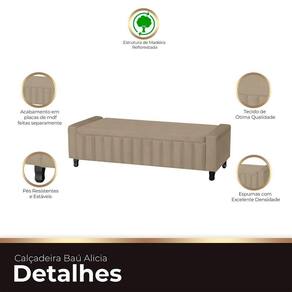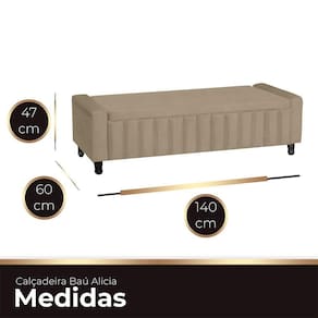 Eleve o estilo do seu quarto com a Calçadeira Baú Estofada Alicia, uma fusão perfeita de modernidade e sofisticação. Seu design estiloso e detalhes em formato de ripas na frente conferem uma estética única, enquanto o assento liso adiciona um toque de elegância discreta. Além de funcional como baú, esta calçadeira é mais do que um móvel; é uma peça de design que transforma o ambiente. Com uma decoração inigualável, a Alicia é o complemento perfeito para o seu quarto, proporcionando um toque de elegância que não passará despercebido. Renove o seu espaço com esta calçadeira que transcende o convencional.