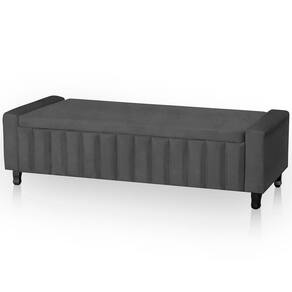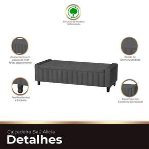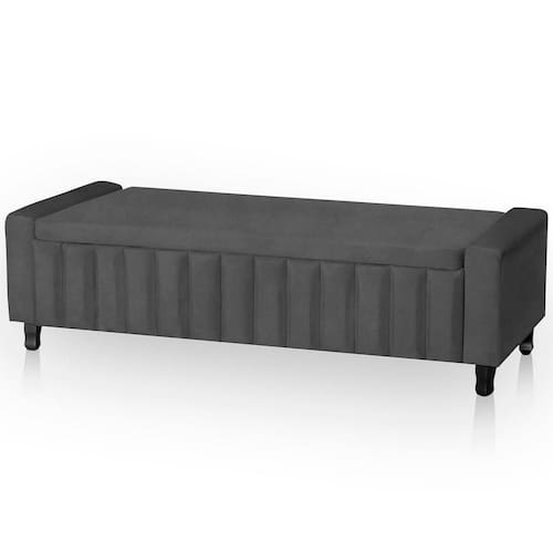Calçadeira Baú Casal Estofada Alicia Veludo Cor Cinza Chumbo