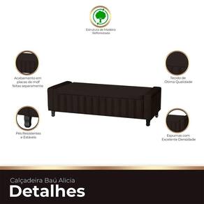 Eleve o estilo do seu quarto com a Calçadeira Baú Estofada Alicia, uma fusão perfeita de modernidade e sofisticação. Seu design estiloso e detalhes em formato de ripas na frente conferem uma estética única, enquanto o assento liso adiciona um toque de elegância discreta. Além de funcional como baú, esta calçadeira é mais do que um móvel; é uma peça de design que transforma o ambiente. Com uma decoração inigualável, a Alicia é o complemento perfeito para o seu quarto, proporcionando um toque de elegância que não passará despercebido. Renove o seu espaço com esta calçadeira que transcende o convencional.