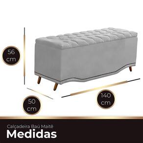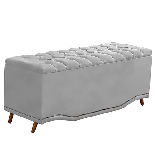 Calçadeira Baú Casal Estofada Maitê Veludo Cinza