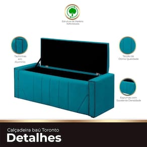 Calçadeira Baú Casal Estofada Toronto Veludo Cor Azul Claro