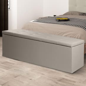 Calçadeira Baú Berlim Dal Poz Estofados Deixe seu quarto com a sofisticação e elegância que ele merece! A Calçadeira Baú tem um design lindo com um toque de praticidade para você guardar suas coisas e deixar seu ambiente com uma organização impecável, além de ser linda.Ela é capaz de inovar o cômodo e ainda oferecer conforto para tornar seu cantinho aconchegante.Dimensões:Altura: 53 cmLargura: 195cmProfundidade: 44cm Estrutura: Madeira EucaliptoTecido: Material SintéticoMontagem: O produto já vai montadoGarantia: 90 dias após o recebimento do produto.Instruções de Limpeza: Utilizar um pano limpo e seco. Não limpar com escovas ou produtos abrasivos.Observações importantes:- As imagens são meramente ilustrativas, não acompanham objetos de decoração e eletros;- As cores dos produtos podem sofrer alterações dependendo do seu monitor ou lote do tecido.- Todos os produtos vão embalados com total segurança.- Confira a embalagem e o produto no ato da entrega, caso o produto esteja avariado recuse imediatamente, coloque uma observação no verso da nota.