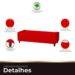 Calçadeira Baú Casal King Size Estofada Alicia Veludo Cor Vermelho