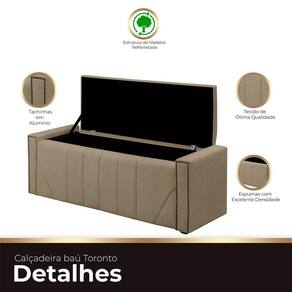 Adicione um toque de requinte ao seu quarto com a Calçadeira Estofada Toronto. Esta peça combina estilo, modernidade e sofisticação em um design único. Com detalhes em cortes em linhas icais e inclinadas, e taxinhas de alumínio nas laterais, sua elegante elevação lembra uma moldura para a cama. Além de estilosa, a Calçadeira Toronto oferece um diferencial em termos de design e funcionalidade, proporcionando um toque de elegância que transforma o ambiente. Renove o seu espaço de descanso com este móvel que promete elevar o nível de sofisticação do seu quarto.