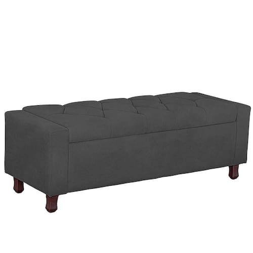 Calçadeira Baú Casal King Size Estofada Valencia Veludo Cor Cinza Chumbo
