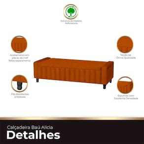 Calçadeira Baú Casal Queen Estofada Alicia Veludo Cor Terracota