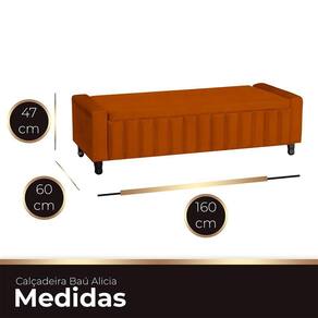 Calçadeira Baú Casal Queen Estofada Alicia Veludo Cor Terracota - Laranja
