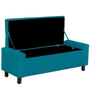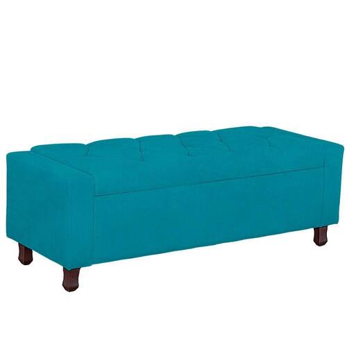Calçadeira Baú Casal Queen Estofada Valencia Veludo Cor Azul Claro