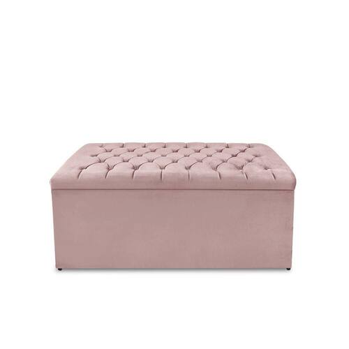 Calçadeira Baú Estofada Dunas Casal 140 Cm - Veludo Rose - Blush