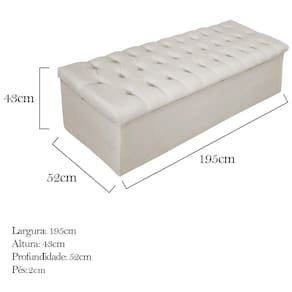 Gostaria de um móvel que trouxesse mais elegância e sofisticação para o seu lar? A Calçadeira Baú Estofada Mel é sua melhor opção! Com característica moderna e com acabamento de qualidade, este produto atenderá suas expectativas! A Calçadeira Baú Estofada Mel é projetada para atender um requisito intimista e aconchegante, transmitindo a ideia de um contexto refinado e singular. Além disso, seu design foi desenvolvido carinhosamente, pensando em levar até você um conforto inigualável. Seus detalhes em Capitonê garantem um toque final de bom gosto e luxuosidade. Especificações Técnicas da Calçadeira Baú Estofada Mel: - Altura Externa: 43 cm; - Largura Externa: 195 cm; - Profundidade Externa: 52 cm; - Altura Interna: 33 cm; - Largura Interna: 185 cm; - Profundidade Interna: 42 cm; - Peso: 20 kg. Diferenciais da Calçadeira Baú Estofada Mel: - Material da Estrutura: fabricado com Madeira Pinus e Eucalipto Reflorestada, e alguns detalhes em MDF; - Detalhes do Tecido: possui detalhes em Capitonê, onde os botões são revestidos no mesmo tecido do produto e finalizados com excelente acabamento; - Detalhes dos Pés: sapata plástica, com alta resistência; - Volumes: nessa compra você receberá um único produto. Recomendações de limpeza: - Limpar com flanela limpa e seca. Não molhar o móvel e não expor em lugar úmido ou próximo de fontes de calor. Não usar produtos abrasivos. Observações Importantes: - As imagens ambientadas são meramente ilustrativas e podem apresentar itens que não compõe o produto; - Objetos decorativos que aparecem na foto não acompanham o produto; - As cores do produto podem variar de acordo com o monitor, a iluminação do ambiente, ou sua percepção visual; - A Calçadeira Baú Estofada Mel chegará montada para você; - Confira as dimensões antes da compra e certifique-se de que o produto passará por elevadores, portas e corredores, já que nossa não inclui a subida de lances de escada, ou o de produtos; - Ao receber seus produtos, verifique no ato do qualquer dano na embalagem. Caso tenha alguma , favor não assinar o de (A transportadora tem obrigação de esperar a conferência); - Produto para uso residencial em ambiente interno, não devendo ficar exposto diretamente ao sol, calor e umidades excessivas.