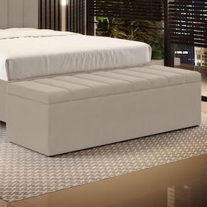 Características do Produto: Madeira de eucalipto proveniente de reflorestamento Fixação com grampos galvanizados Espuma Poliuretano D20 Revestimento: Sued Cor: Capuccino Tamanho: Queen para cama de 158 cm Possui pés: Sim Tipo de pés: 4 sapatas Possui baú interno Embalagem: plástico bolha, papelão ondulado, malha, plástico Garantia de 3 meses contra defeitos de fábrica.