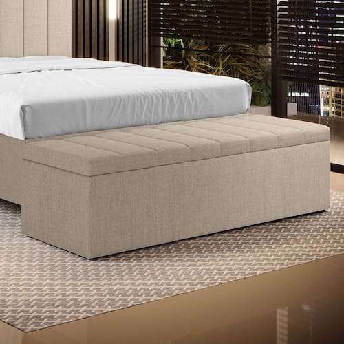 A Calçadeira Navi traz conforto e elegância, com excelente custo benefício. Possui um design único e detalhes que dão um toque de sofisticação e um ótimo acabamento. Feita de matéria prima de qualidade e ótimo tecido, para garantir durabilidade e manter a beleza de seu quarto por muito tempo. O produto possui baú interno para armazenagem de itens e organização. Esta calçadeira irá proporcionar toda a beleza para seu ambiente. Adquira já!