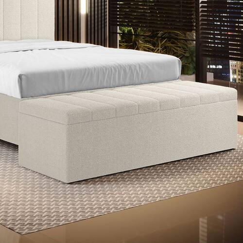 *Características do Produto* Madeira de eucalipto proveniente de reflorestamento. Fixação com grampos galvanizados. Espuma Poliuretano D20. Produto Costurado. Revestimento: Bouclê Possui pés: Sim, 4 sapatas. Para Cama Box de Casal King 193 cm. Com baú interno espaçoso. Embalagem: plástico bolha, papelão ondulado, malha, plástico Garantia de 3 meses contra defeitos de fábrica.