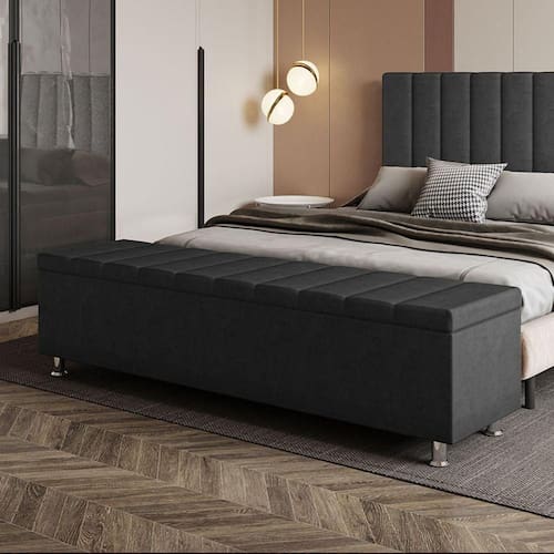 Calçadeira Baú Recamier Estofado Casal 140 Cm ônix Veludo Preto