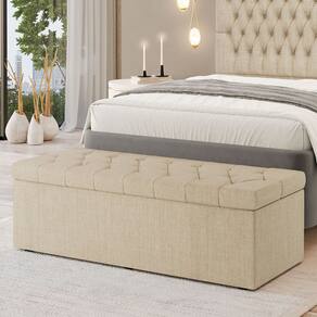 Calçadeira Baú Sagitarius Para Cama de Casal 140cm no Tecido Linho - Agilidade e Elegância Aradecor - Bege