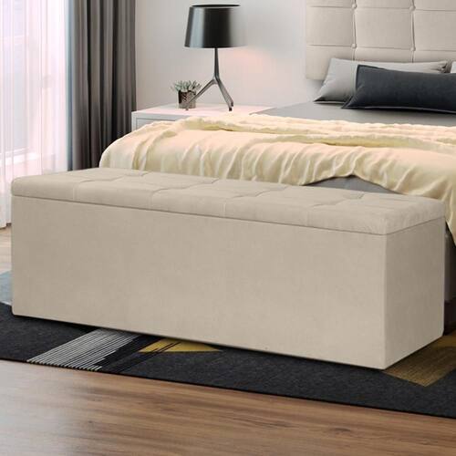 Calçadeira Baú Solteiro 0,90m Roma Suede Bege Dal Poz Estofados