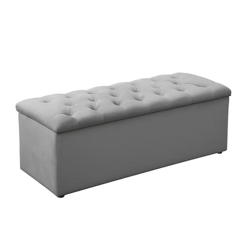 Design moderno e funcional Revestimento cinza neutro, fácil de combinar Estrutura firme e durável Pode ser usada como assento, apoio ou baú (caso o modelo inclua abertura)