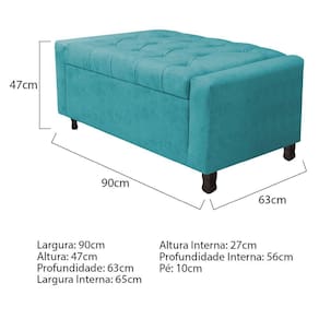 Calçadeira Baú Solteiro Everest P02 90 Cm Para Cama Box Suede - Doce Sonho Móveis Cor Azul Turquesa