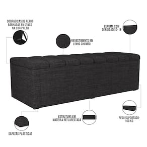 Ter um móvel funcional, com personalidade e compacto em sua decoração é uma tarefa nem sempre tão fácil de ser solucionada, ainda mais se pensarmos que ele precisa harmonizar com o restante da mobília. A Calçadeira Recamier Baú Para Cama De Casal Dália 140x50 Cm W01 Linho Chumbo - Lyam Decor preenche todos esses requisitos amplamente! Com muita graciosidade e conforto possui generoso espaço interno, que te auxiliará na acomodação de calçados, cobertores e/ou outros pertences, além de ser muito útil para que você possa calçar seus sapatos com maior agilidade, além de garantir um assento adicional no cômodo, o apoio perfeito.