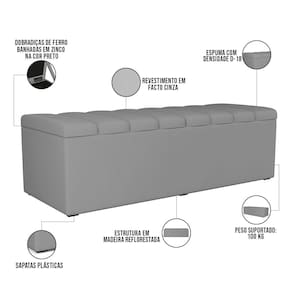 Ter um móvel funcional, com personalidade e compacto em sua decoração é uma tarefa nem sempre tão fácil de ser solucionada, ainda mais se pensarmos que ele precisa harmonizar com o restante da mobília. A Calçadeira Recamier Baú Dália preenche todos esses requisitos amplamente! Com muita graciosidade e conforto possui generoso espaço interno, que te auxiliará na acomodação de calçados, cobertores e/ou outros pertences, além de ser muito útil para que você possa calçar seus sapatos com maior agilidade, além de garantir um assento adicional no cômodo, o apoio perfeito. Como se não bastasse toda sua beleza, ainda contrasta muito bem com o ambiente e conta com revestimento de máxima qualidade, cabe mencionar também sua estrutura em madeira, bastante firme e resistente, permitindo maior vida útil a ela. Você merece um móvel agradável e versátil em seu local de descanso, não perca esta oportunidade aconchegante e imperdível!