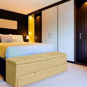 Calçadeira Recamier Baú Sapateira Casal Queen 160cm Ayla Suede Tampo Reto - Estopar - Amarelo