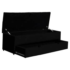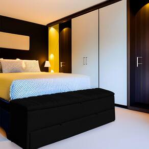 Calçadeira Recamier Baú Sapateira Casal Queen 160cm Ayla Veludo Tampo Reto - Estopar - Preto