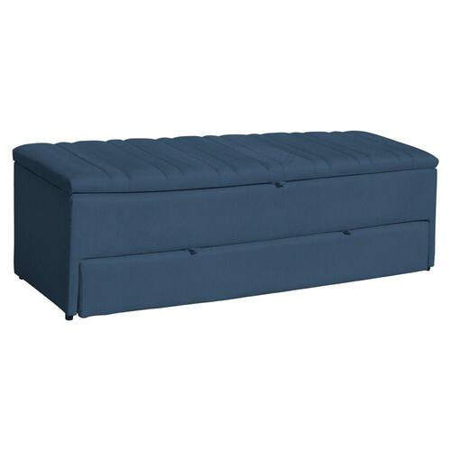 Calçadeira Recamier Baú Sapateira Solteiro 90cm Ayla Suede Tampo Reto - Estopar - Azul Royal