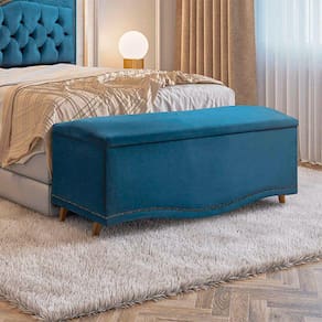 Calçadeira Sapateira Baú Holanda 160cm de Largura Veludo Star Confort - Azul