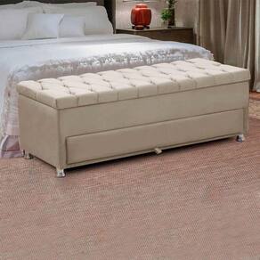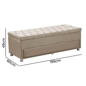 Calçadeira Sapateira Baú Munique 195cm de Largura Veludo Star Confort - Bege Claro