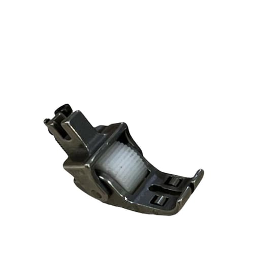 Calcador Reta Industrial grande e com auxiliar Rolete dentado,indicado para tecido medio e pesado. alcador Máquina Costura Reta Industrial com Roletes Transporta com muito mais facilidade o tecido, ajuda a resolver o problema de quando o calcador patina/desliza sobre o tecido e também quando deixa marcação no tecido.