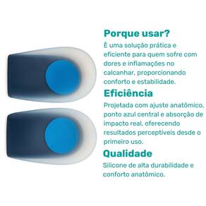 A Calcanheira Acomodativa Silidere com Ponto Azul foi desenvolvida para amortecer impactos e aliviar dores no calcanhar, especialmente em casos de esporão de calcâneo, tendinite e bursite retrocalcaneana.