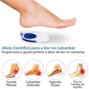 - Alívio Direcionado para a Dor: Especialmente desenvolvida para tratar as causas comuns de desconforto no calcanhar, sendo altamente eficaz para: - Esporão de Calcâneo - Fascite Plantar - Tendinite de Aquiles - Dores e cansaço na região do calcanhar