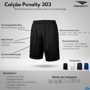 O Calção da Penalty futebol 303 é desenvolvido para os craques treinarem seu futebol ou praticarem atividades físicas com muito mais conforto, leveza e flexibilidade durante os movimentos. Garantindo assim, muito mais desempenho!