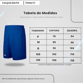 Calção Penalty Futebol Modelo 303 Masculino Esportivo - Azul Royal - GG