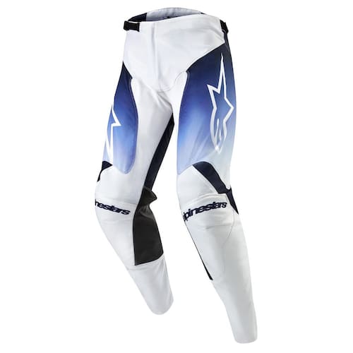 Alpinestars Calça Racer Veil/Hollow/Graphite MX Off Road, Branco/Azul Escuro/Azul Claro - O grande painel elástico traseiro oferece maior conforto e flexibilidade para a cintura e parte inferior das costas - Malha extensa leve e ventilada com inserções de painel elástico para um ajuste otimizado - Forro de malha para conforto superior - Painéis internos reforçados em couro para maior resistência ao calor, aderência e conforto - Fecho de catraca com alças de ajuste de cintura para um ajuste seguro e personalizado