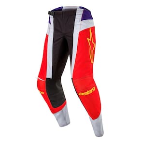 Alpinestars 3727024-4031-38: Calça Techstar Ocuri Laranja Choque/Roxo/Preto Tamanho 38 - Reforço de tecido de poliéster altamente resistente à abrasão e durável na área do assento - Os painéis elásticos de quatro direções são estrategicamente posicionados para otimizar a liberdade de movimento - Zonas de perfuração de corte a laser localizadas para altos níveis de fluxo de ar de resfriamento - O punho da perna possui uma inserção de malha elástica para calçar e tirar com facilidade - Estampa de silicone na cintura interna para manter as calças na posição