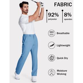 MAGCOMSEN Calça social masculina de golfe elástica, secagem rápida, resistente à água, leve, frente lisa, para trabalho, absorção de umidade, Azul claro - Absorção de umidade: As calças de golfe de secagem rápida apresentam tecnologia de absorção de umidade. Leve, respirável, sem rugas - 5 bolsos: nossas calças de golfe frontais planas incluem 2 bolsos laterais profundos, 1 bolso com zíper oculto direito para o seu telefone, 1 bolso traseiro para fácil acesso às luvas e 1 bolso traseiro com botão - Tecido elástico: as calças de golfe masculinas são feitas de tecido elástico em 4 direções para proporcionar um uso macio e confortável - Design detalhado: Cintura elástica com passadores de cinto, braguilha de zíper com fecho de botão, perna reta, melhora sua flexibilidade ao fazer um balanço perfeito - Várias ocasiões: nossas calças sociais de golfe são perfeitas para golfe, trabalho, viagens, compras, ioga. Pode ser facilmente combinada com roupas e sapatos casuais