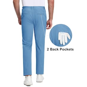 MAGCOMSEN Calça social masculina de golfe elástica, secagem rápida, resistente à água, leve, frente lisa, para trabalho, absorção de umidade, Azul claro - Absorção de umidade: As calças de golfe de secagem rápida apresentam tecnologia de absorção de umidade. Leve, respirável, sem rugas - 5 bolsos: nossas calças de golfe frontais planas incluem 2 bolsos laterais profundos, 1 bolso com zíper oculto direito para o seu telefone, 1 bolso traseiro para fácil acesso às luvas e 1 bolso traseiro com botão - Tecido elástico: as calças de golfe masculinas são feitas de tecido elástico em 4 direções para proporcionar um uso macio e confortável - Design detalhado: Cintura elástica com passadores de cinto, braguilha de zíper com fecho de botão, perna reta, melhora sua flexibilidade ao fazer um balanço perfeito - Várias ocasiões: nossas calças sociais de golfe são perfeitas para golfe, trabalho, viagens, compras, ioga. Pode ser facilmente combinada com roupas e sapatos casuais