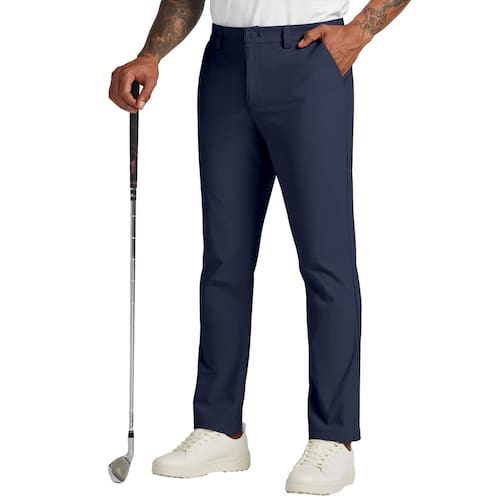 Combinando estilo clássico atemporal com versatilidade, as calças de golfe masculinas proporcionam conforto durante todo o dia e boa aparência contemporânea dentro ou fora do campo. O tecido elástico de desempenho é leve, respirável e de secagem rápida para o máximo de conforto. - Secagem rápida e elástica: tecido macio, de secagem rápida e respirável absorve a umidade da sua pele para manter seca o dia todo. O material de elastano tem elasticidade e recuperação incríveis, movendo-se melhor em todas as direções - Proteção solar: o tecido UPF 50+ bloqueia os raios UV prejudiciais, oferece excelente proteção contra queimaduras solares - 4 bolsos: dois bolsos de mão convenientes fornecem armazenamento seguro e profundos o suficiente para guardar seu telefone. Dois bolsos traseiros escondem seus itens essenciais, como bola de golfe ou luvas - Caimento justo: fecho de pressão central frontal totalmente funcional com fecho de botão para garantir o seu ajuste. Ajustada ao quadril e coxa com perna ligeiramente afunilada. Fica na cintura. Costura interna: 71 cm/76.2 cm/81.3 cm/86.4 cm - Durável, elástica e leve, a calça masculina de golfe oferece conforto, cobertura e uma ampla variedade completa de movimentos para o seu golfe e prazer no trabalho. Perfeita para golfe, trabalho, viagens ou uso diário