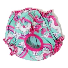Calcinha em tecido tricoline ou textoleen, com elástico; Cor: estampa unicórnio verde; Acabamento em viés rosa; Laço na cor do tecido ; Tamanho: M Medidas aproximadas: 36 cm de cintura, 15 cm de comprimento; Ideal para cachorrinha no cio, pois oferece mais proteção e se ajusta ao corpinho; Possui elástico para facilitar o uso e trazendo conforto; Seu tecido de alta qualidade com um estampa fofinha para deixala ainda mais charmosa. Marca: Não Informado