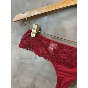 Calcinha vermelha com detalhe em renda sem costura. Para as apaixonadas por detalhes a renda macia no cós e nas cavas das pernas traz um toque delicado e deixa esta peça com um diferencial incrível. O jacquard flower sofisiticado alia conforto em uma só proposta!