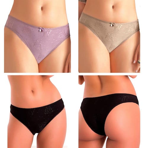 Características: Calcinha laterais largas. Cavas das pernas com elásticos decorativos e frente com delicado lacinho de cetim. Modelo ideal para o uso diário. Confeccionada em tecido com fio LYCRA® de toque extremamente macio, com bordado de graciosas borboletas.