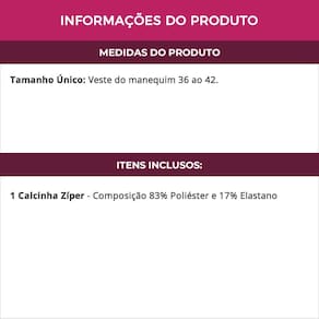 1 Calcinha Zíper - Composição 83% Poliéster e 17% Elastano