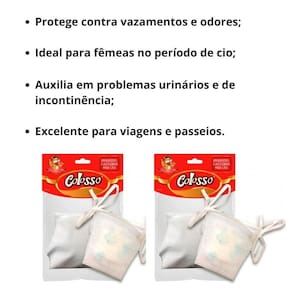 Mais sobre o Produto: Protege contra vazamentos e odores; Ideal para fêmeas no período de cio; Auxilia em problemas urinários e de incontinência; Excelente para viagens e passeios.