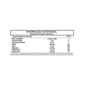 3. Quais são os benefícios do cálcio, magnésio, zinco, vitamina D3 e vitamina K2? - O cálcio e o magnésio auxiliam na formação e manutenção de ossos e dentes. A vitamina D3 auxilia na absorção de cálcio e fósforo. A vitamina K2 e o zinco auxiliam na manutenção dos ossos.