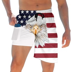 - Design 2 em 1: calção de banho masculino com padrão de bandeira americana, leve e de secagem rápida, oferecendo um visual elegante e patriótico.