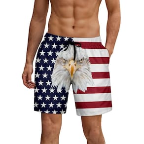 Estes calções de banho são feitos de 100% poliéster, que é de secagem rápida, leve e respirável, proporcionando a você uma experiência de natação confortável e agradável. A cintura elástica com fecho de cordão pode efetivamente ajustar o aperto de acordo com suas necessidades, garantindo que os calções de banho permaneçam no lugar durante a natação ou outras atividades aquáticas. Os calções de banho apresentam um padrão de bandeira americana, que não é apenas elegante, mas também patriótico, tornando-os perfeitos para festas na praia, competições de natação e outras atividades ao ar livre. Estes calções de banho são laváveis na máquina e podem ser facilmente mantidos. Observação: a cor do item real pode ser ligeiramente diferente da imagem devido à iluminação, fotografia ou diferentes configurações de exibição.